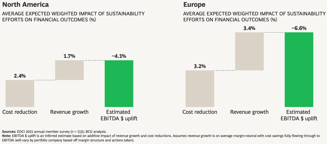 Some compelling data and news from BCG. In their newly-published analysis Sustainability in Private Markets: How Staying the Course Creates Value, the firm reported private equity General Partners (GPs) “estimate that sustainability drives 4% to 7% in realized EBITDA growth over the hold period of their portfolio companies.”